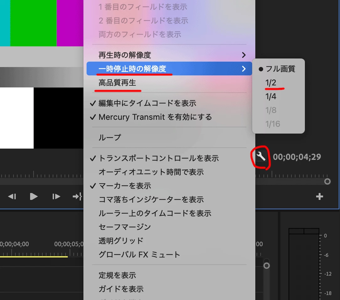 たとえば、1920×1080 29.97fpsのシーケンスで、Premiere Pro内蔵のカラーバーを貼り付けた状態でも症状が出るか否かといったこともお試しいただく価値があるのではないかなと思います。