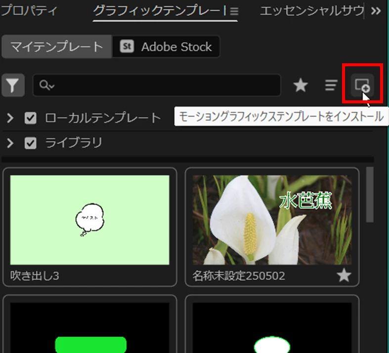 また、Adobeのモーショングラフィックテンプレートであれば、表示されるのでしょうか?