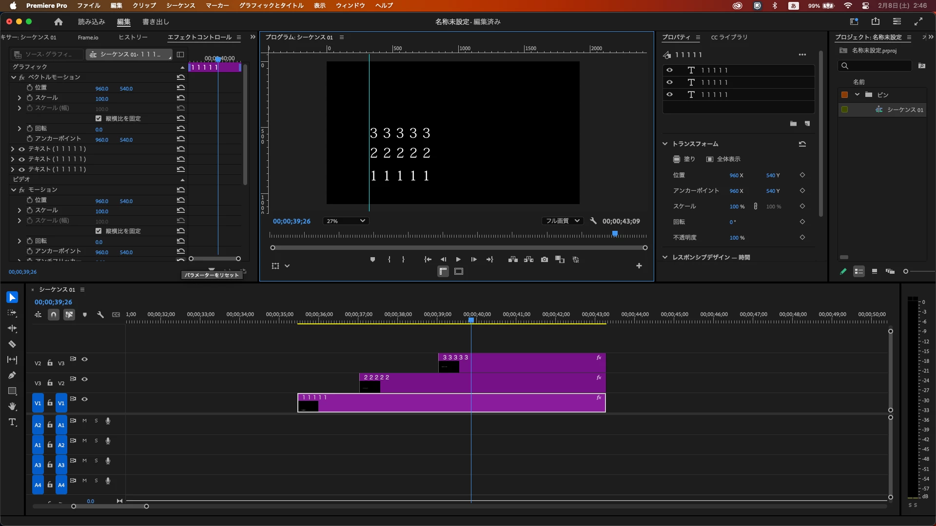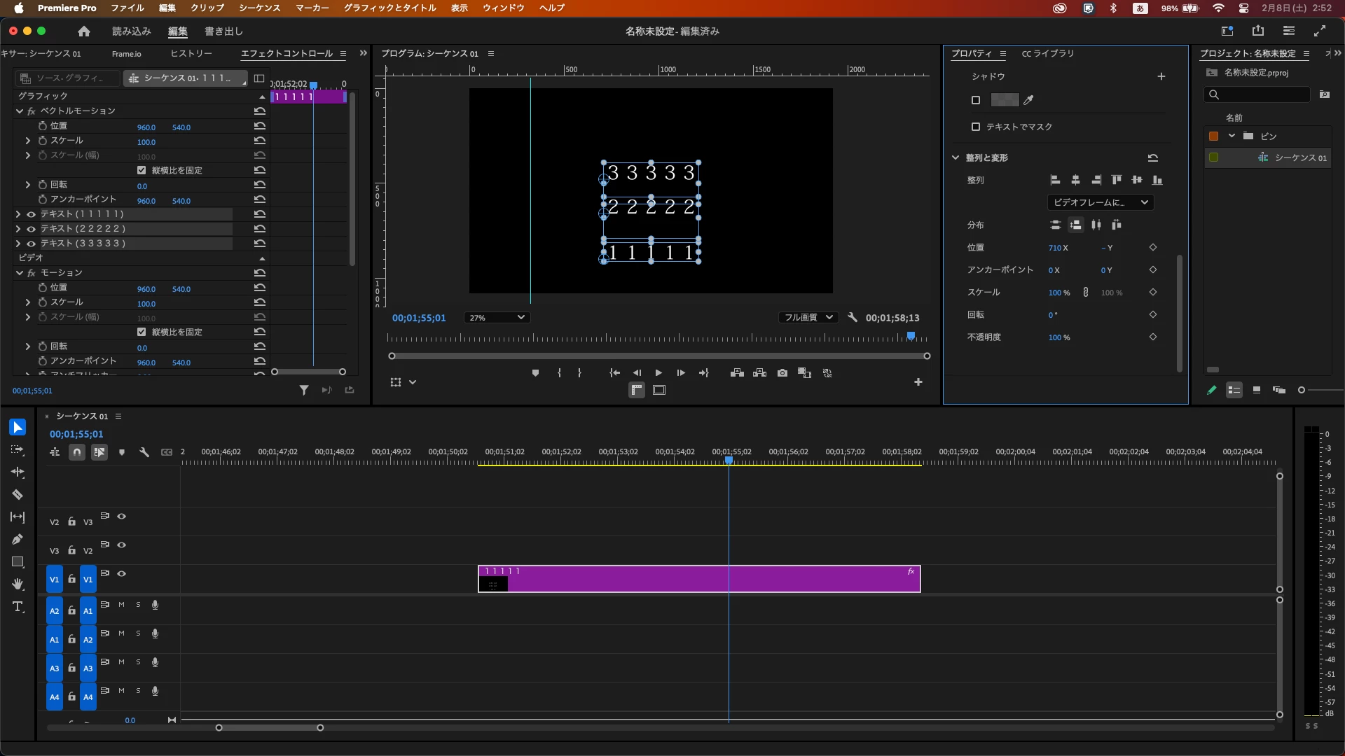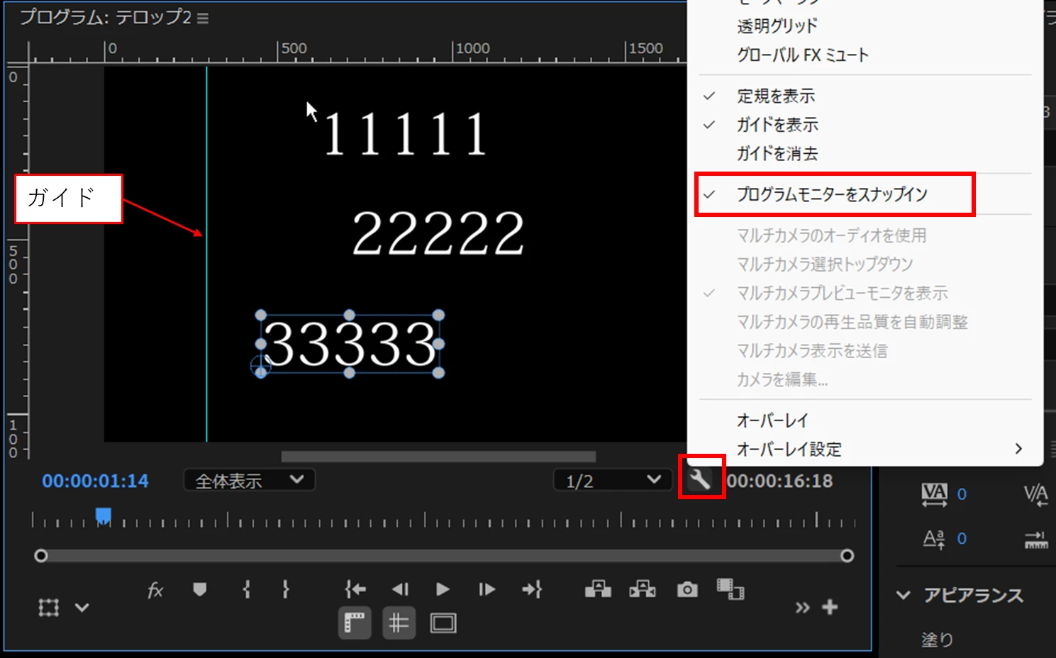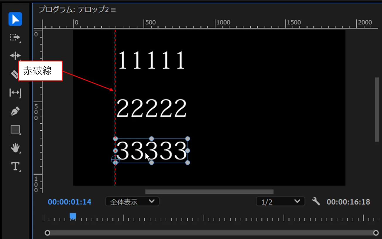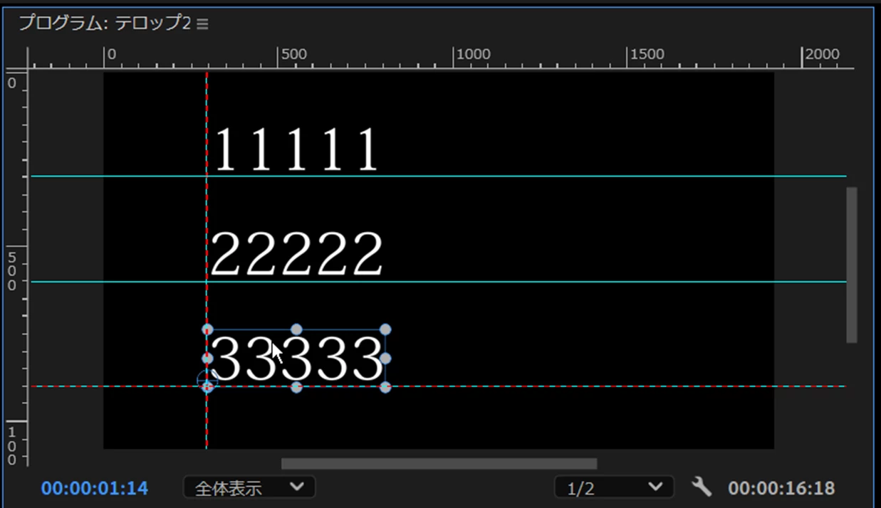 別クリップのテロップを左揃えで垂直方向の間隔を均等に整列したい