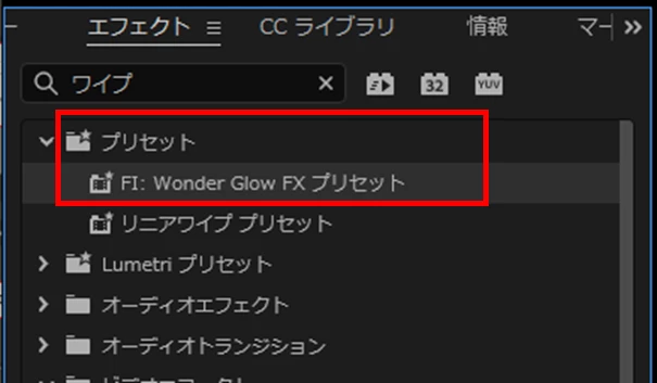 ②「エフェクト」パネルに作成したプリセットは表示されます。