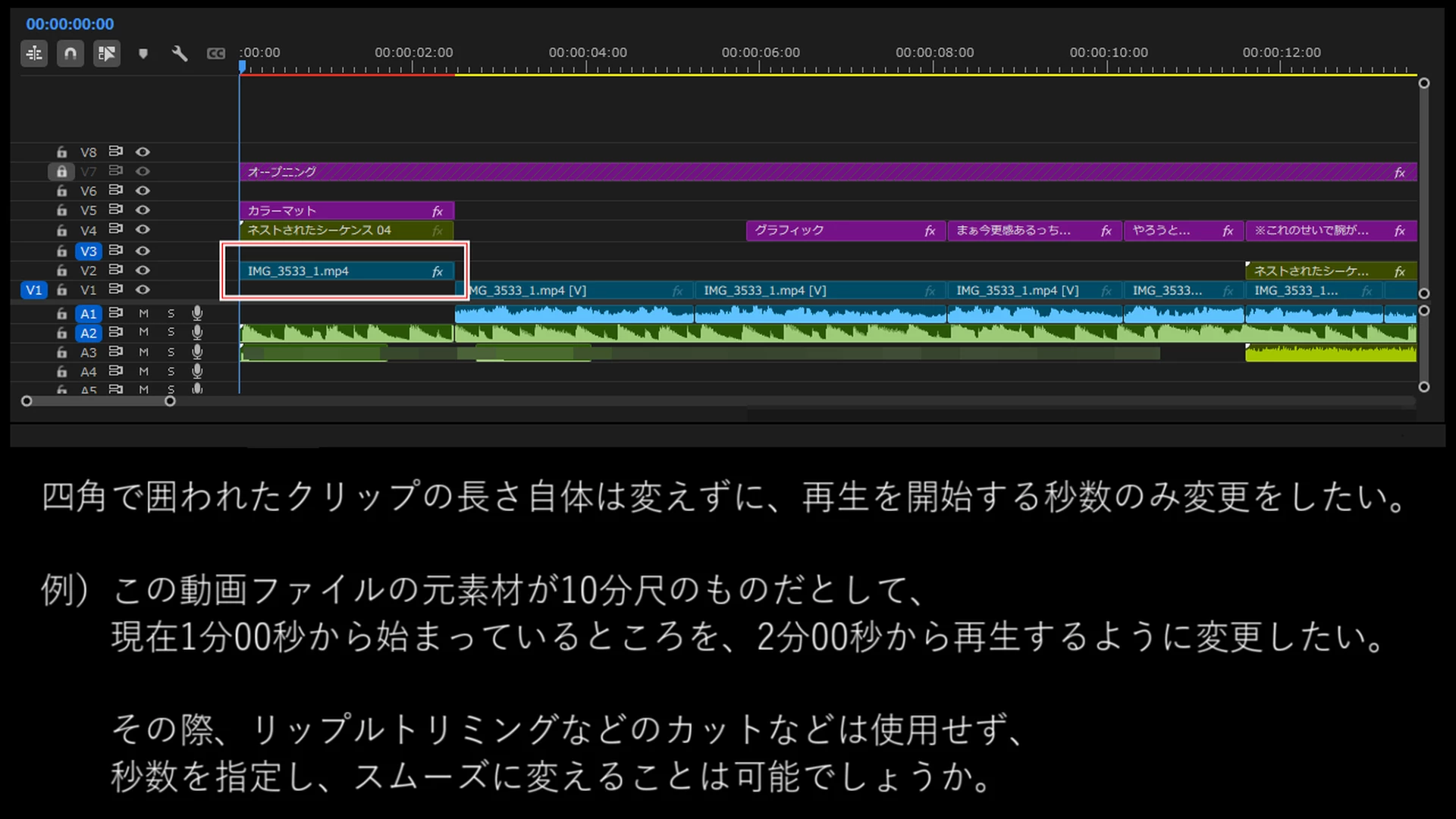 >リップルトリミングなどのカット編集を使用せず