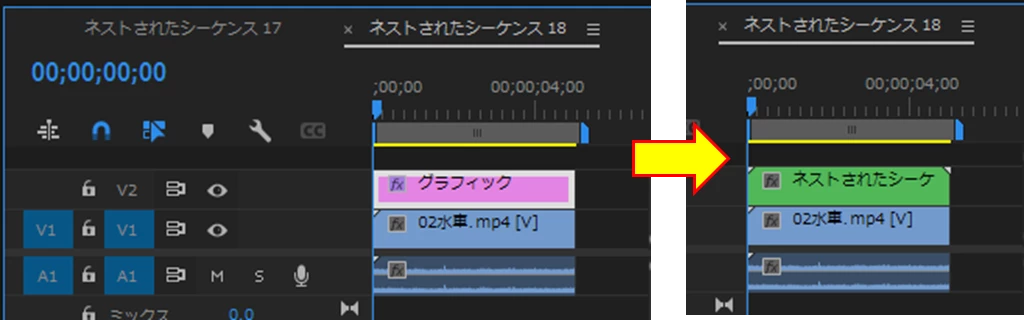 ②グラフィッククリップをネスト化します。