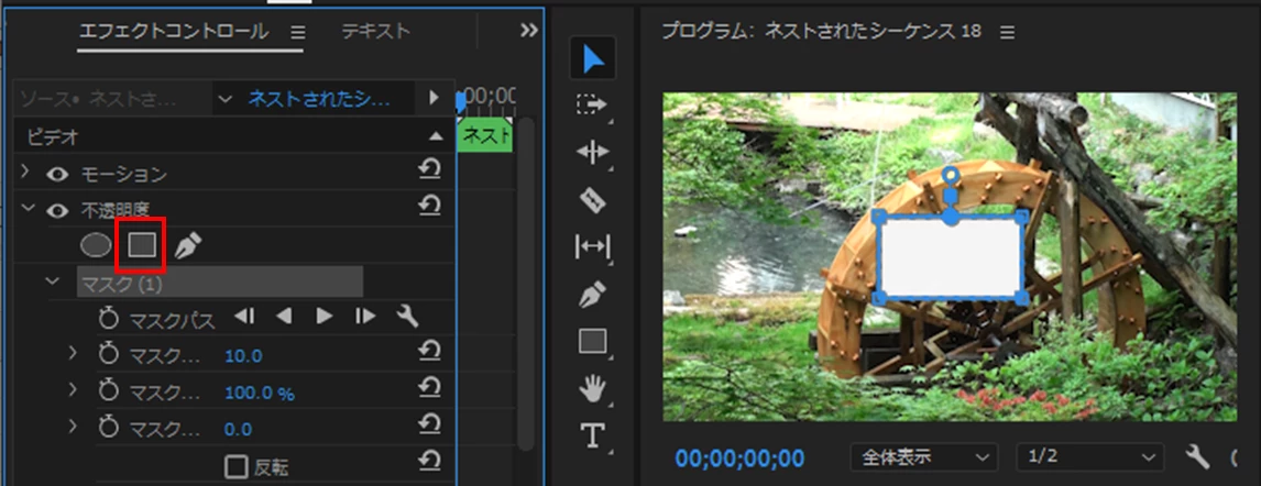 ③不透明度の「4点の長方形マスク」を適用します。