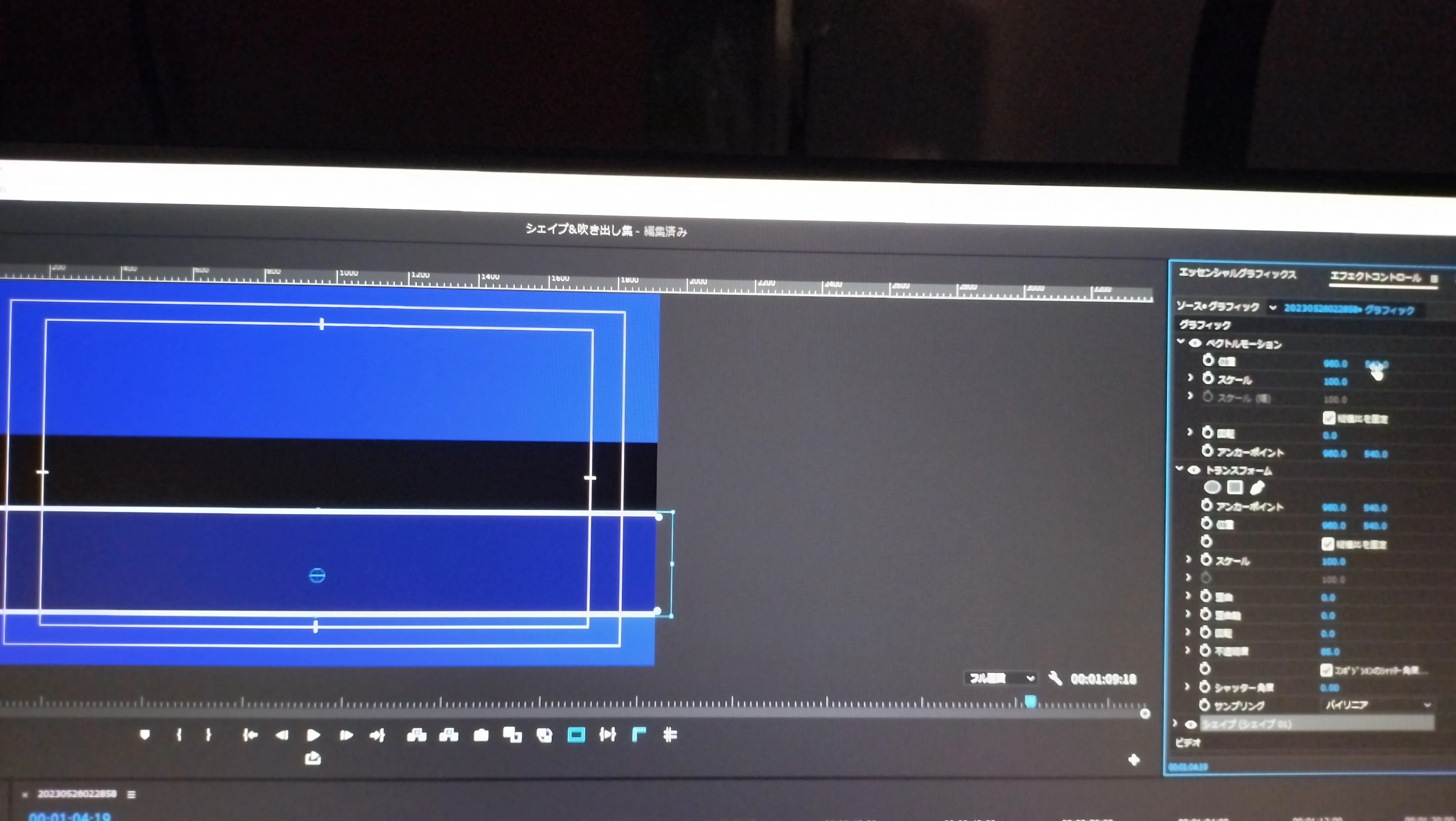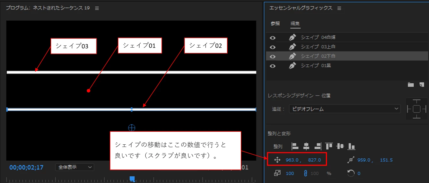 質問です。まず当方のプレミアプロバージョンは23.6.0(ビルド65)、OSはWindows11です。動画の様に、真ん中からシェイプを出し、尚且つ少しキラーンと光るようなやり方を教えて下さい。よろしくお願い致します。