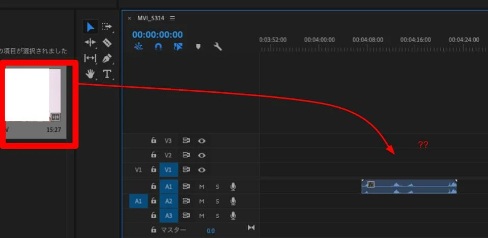 どの動画も音声レイヤーのみタイムラインにドラッグでき、映像レイヤーが消えてしまいます。
