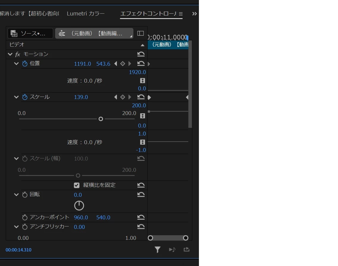 キーフレームで値を調整できるので、スケールを利用したアニメーションの作成に使用できます。