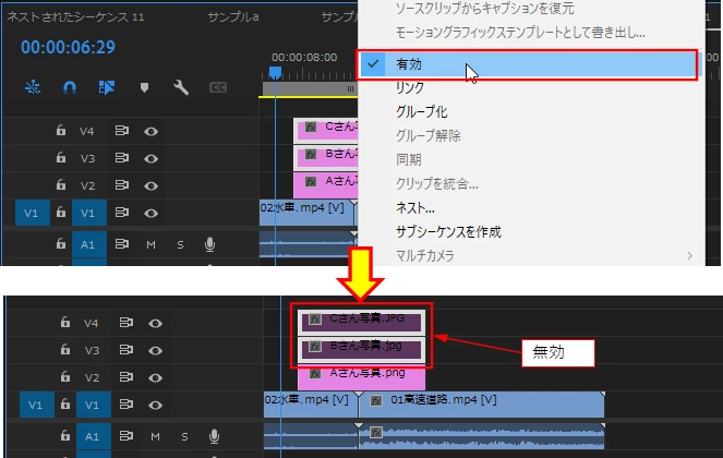 Premiere Proで一度作成した動画を元に、違う人向けに少し写真や動画を違うものに修正した