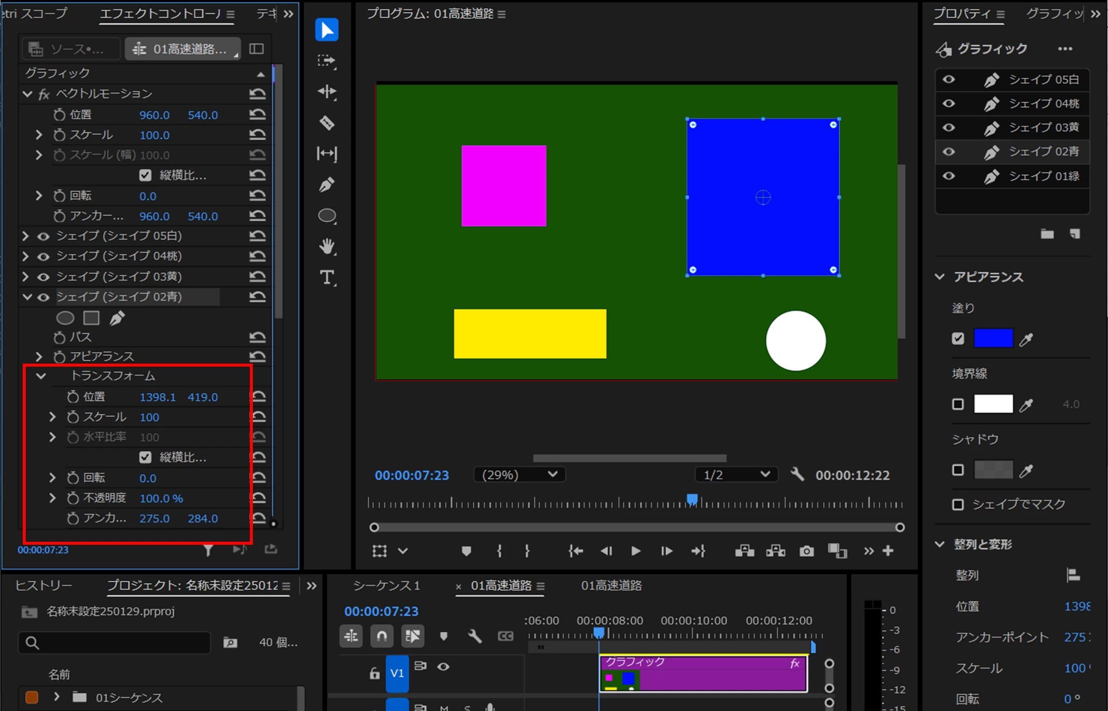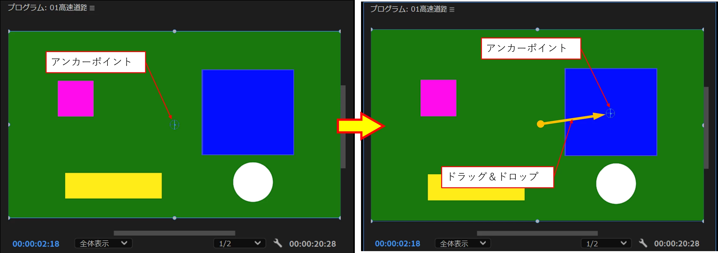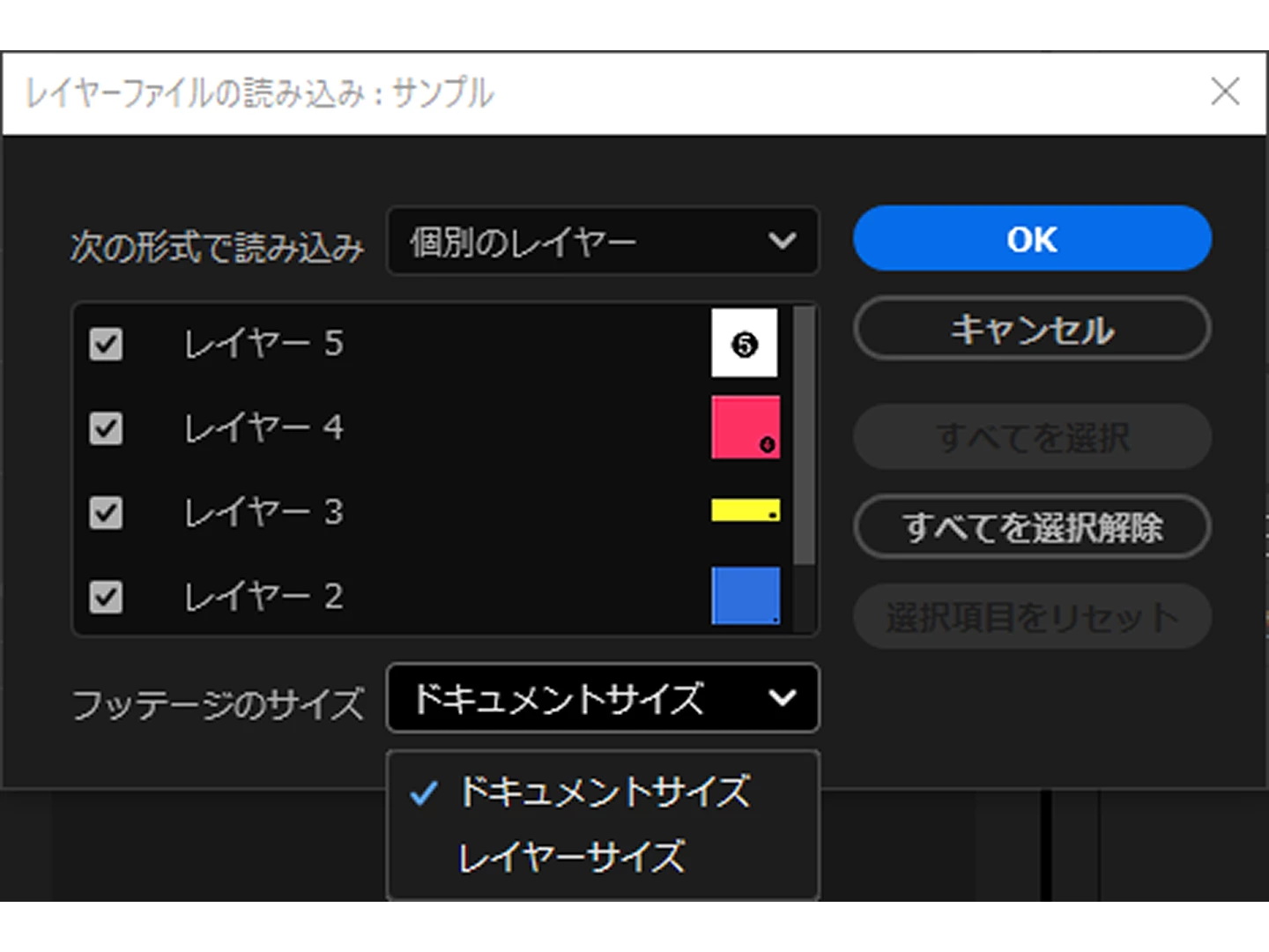 Premiereの読み込みは「レイヤーサイズ」を選択して、位置に値を入力します。