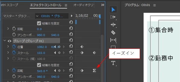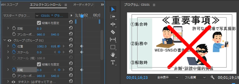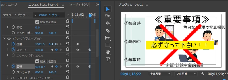 図1の状態から黄色のテロップを回転させながら拡大して表示させたいのですが