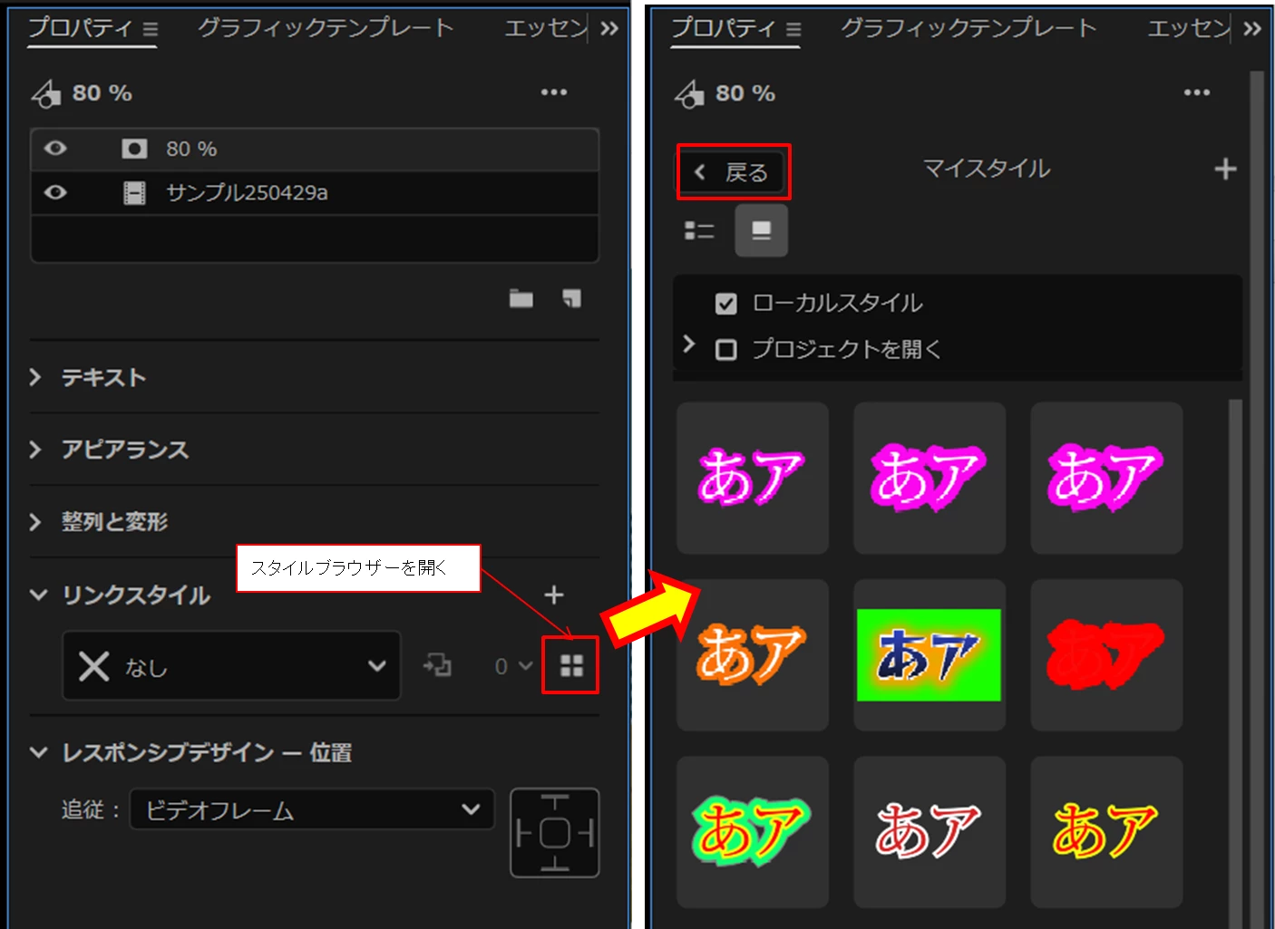このスタイルからビデオトラックのクリップに適用します。