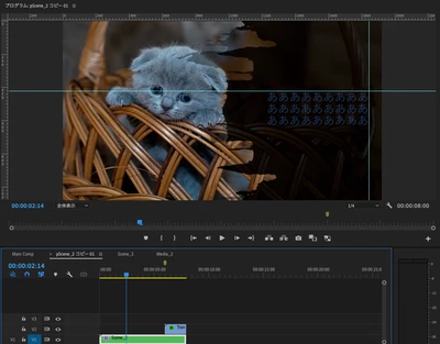 ネスト名「pScene_2 コピー 01」 > ネスト名「Scene_2」 > mp4や複数のネスト > text, 画像のネストの中身