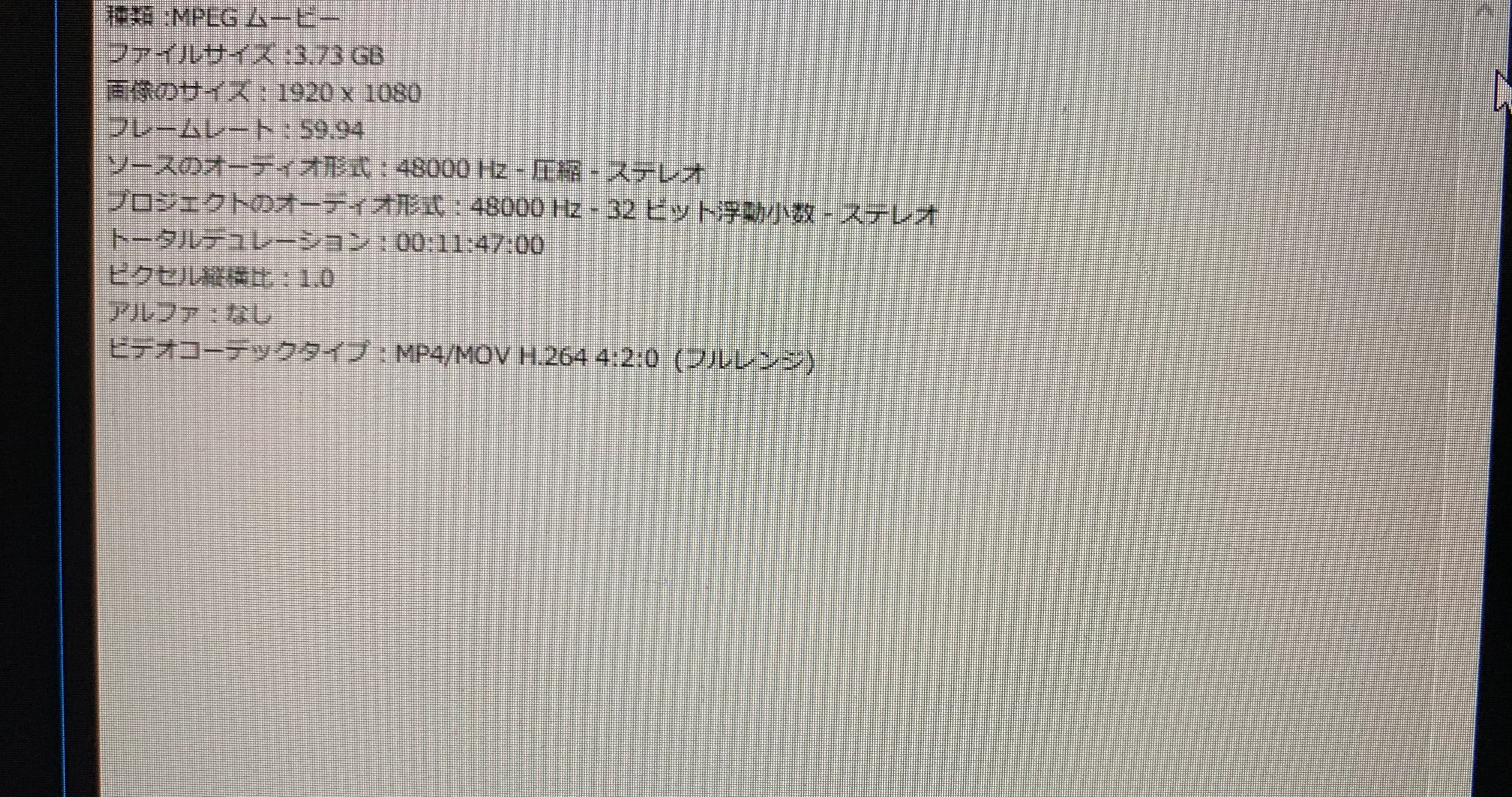 提示頂いたスクリーンショットを見ますと、フレームレートは59.94fpsとなっていますが、正常なクリップのフレームレートは29.97fpsということはありませんか。「プロパティ」ウィンドウから確認してみて頂けませんか。