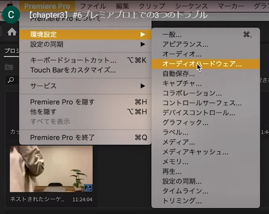 左上にpremiere Proの表示が出てきません。環境設定等が出てきません?