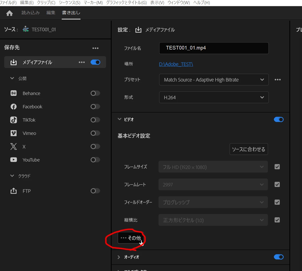 Media Encoderで書き出しても同じところで止まってしまいます。