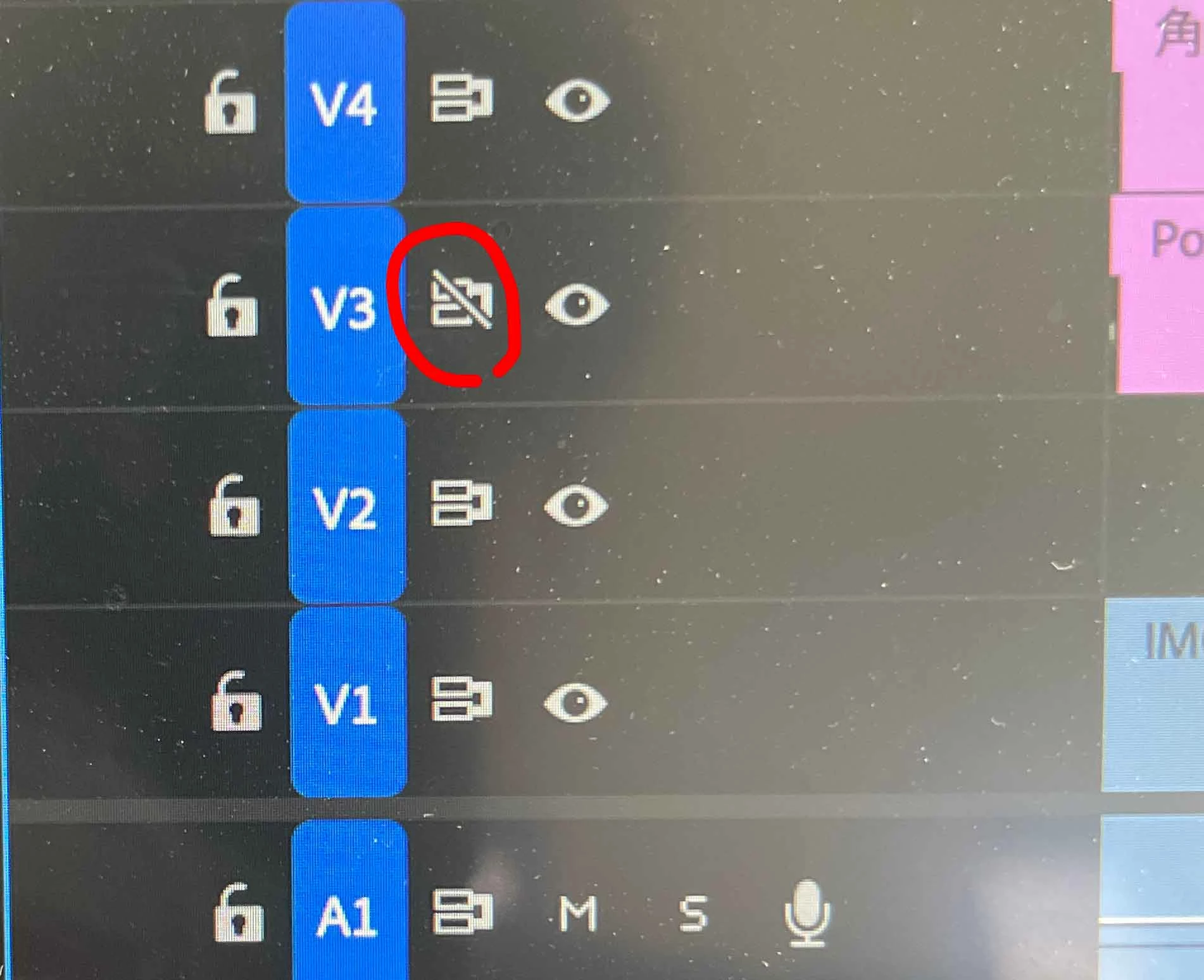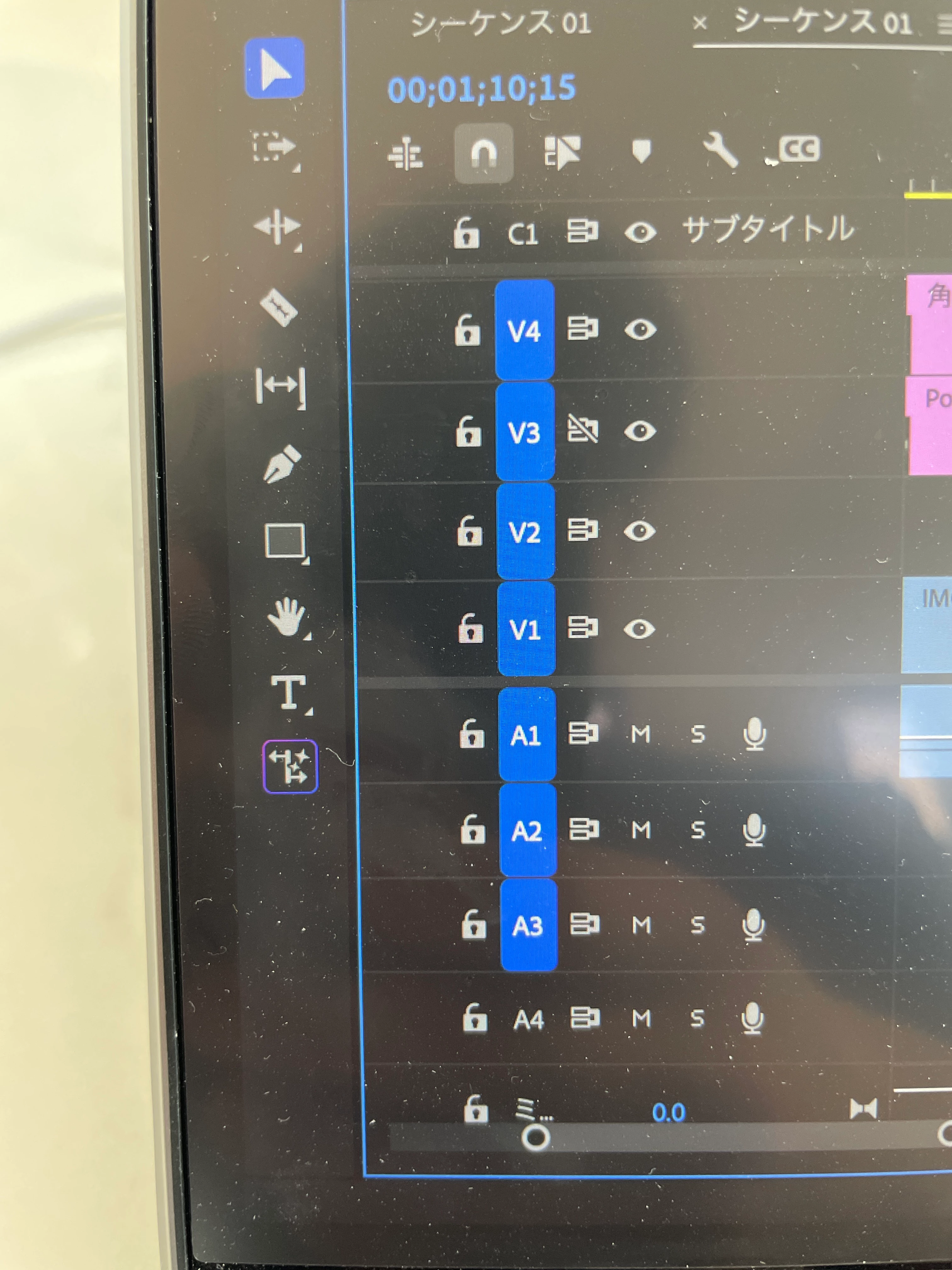 別シーケンスに保存しているアイキャッチのテンプレートをコピーしてCtr+shift +vで挿入しようとしたのですがなぜかV3の列のみ挿入した分後ろにずれません。なぜでしょうか