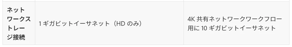 画像を添付していただいた部分は、ネットワークストレージに素材を置いた場合に、ネットワークの速度がどのくらい必要かという目安として書かれているものかと思います。