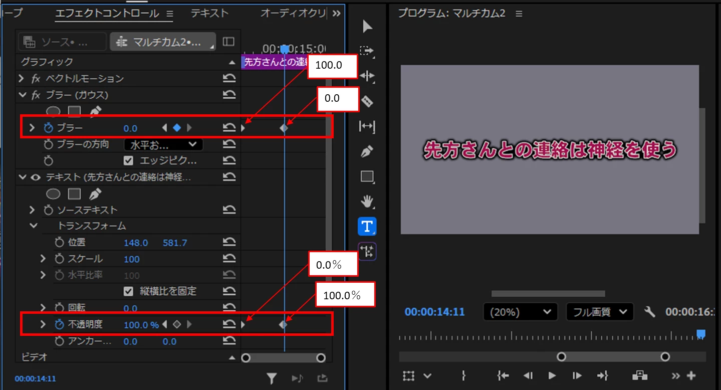「先方さんとの連絡は神経を使う・・・」というテロップで文字が最初に浮き出ているアニメーションを作成したいです。