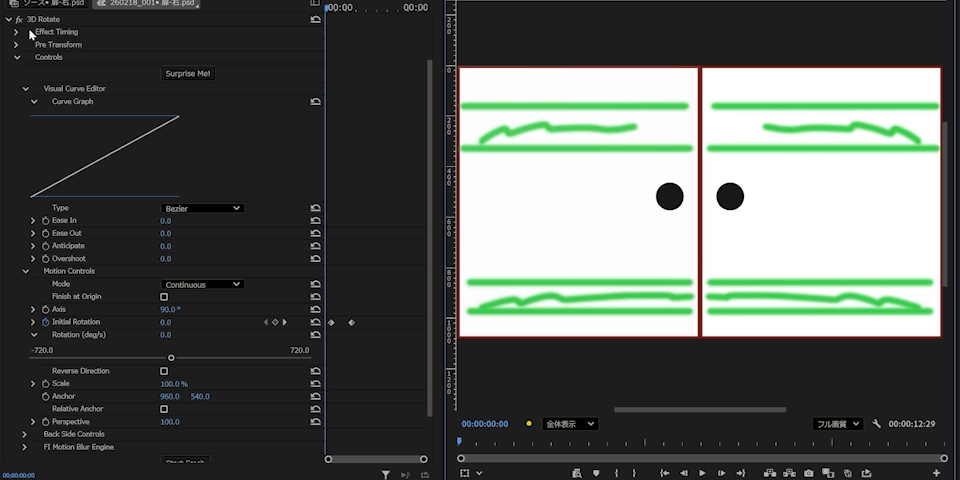 Premiere Pro v25.5から搭載された新しいエフェクトをお使いいただきますと、様々な効果を容易に作り出せるので、是非いろいろパラメーターを変えながらお試しいただければと思うのですが、今後映像編集を行っていくうえで、このように「シンプルな効果を複数重ねる手法」があることも頭の片隅に置いておきますと、何かの役に立つこともあるのではないかなと思い、返信した次第です。