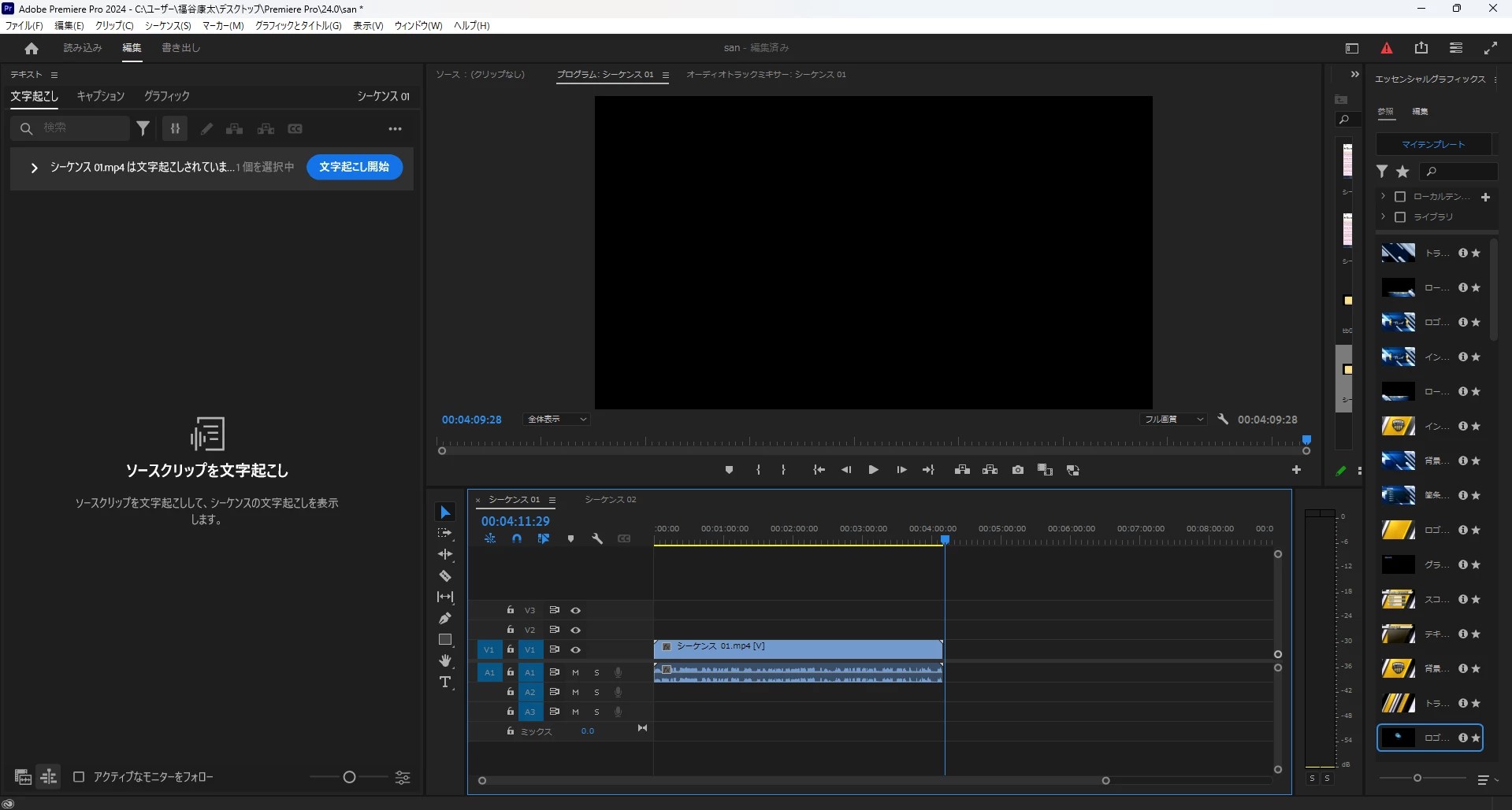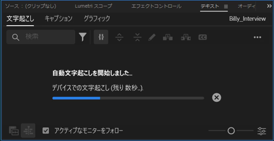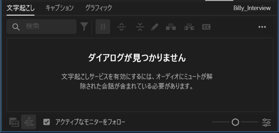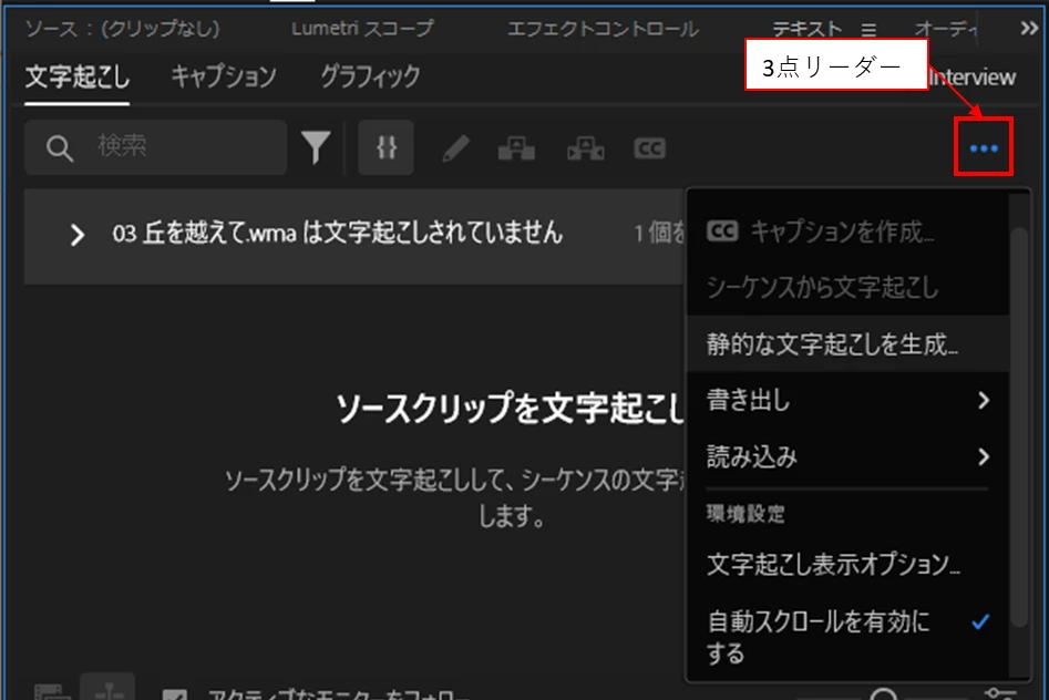 3点のシーケンスから文字起こしはクリックできず、静的な文字起こしは押しても下の画面になります。
