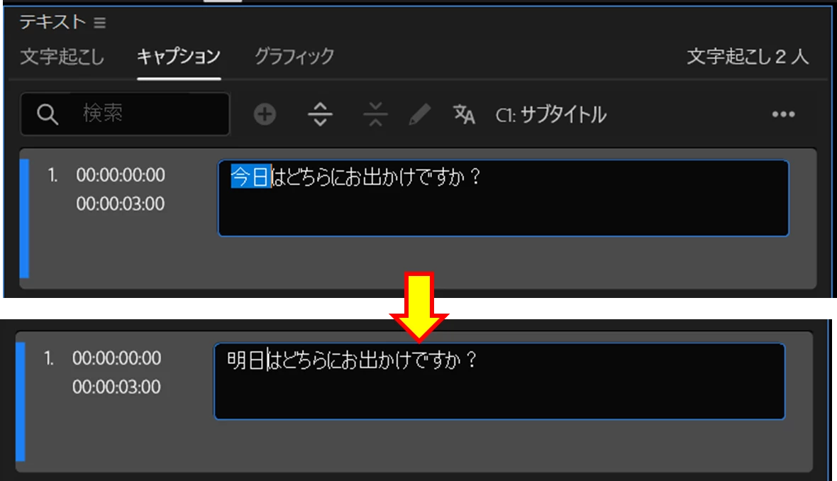 キャプションの編集時、Alt+sでキャプションの分割をすると3つになる。