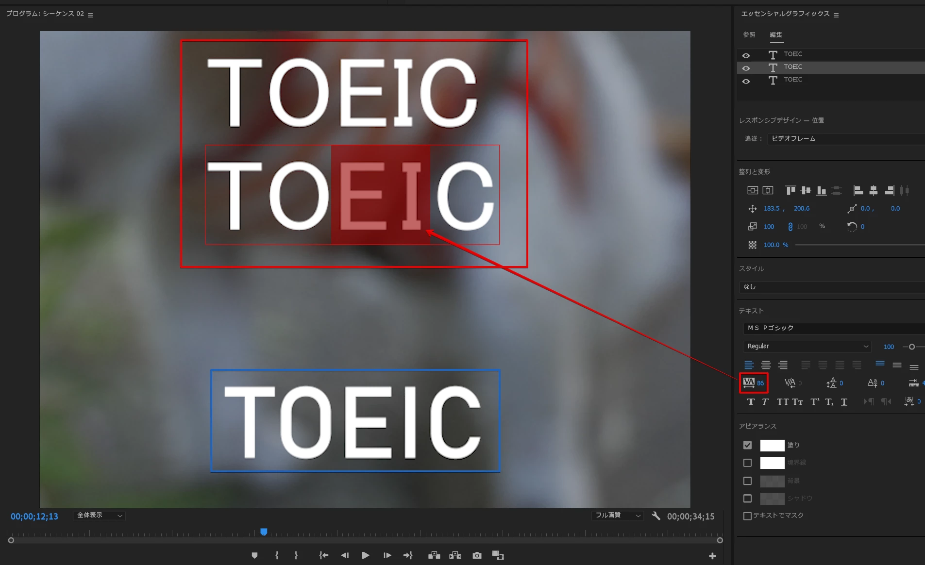 例えば TOEIC をプレミアプロのテロップで入力すると