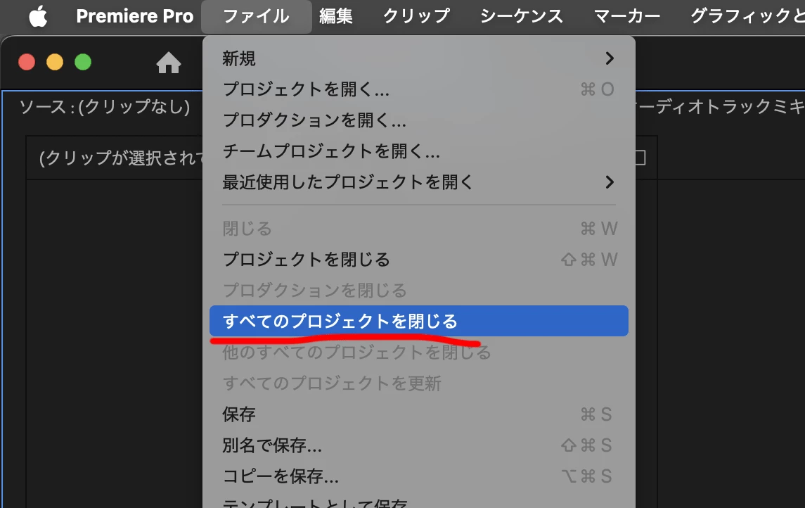 以下余談ですが、Premiere Proは複数のプロジェクトを同時に開くことができ、これ自体は大変便利な機能です。