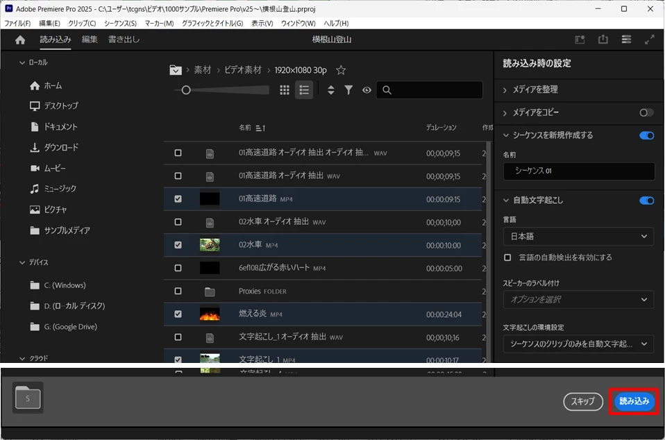 Premiere Pro v22.3からの読み込みモードは、ちょっと使いづらかったのですが、v25.0で使いやすい読み込みモードに変更になっています。