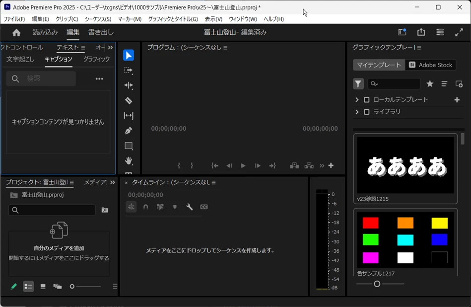 ⑤「読み込み」モードで設定した内容でプロジェクトが開きます。