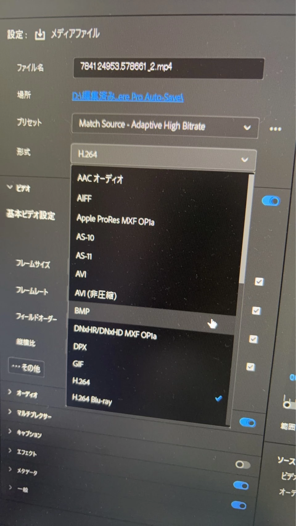 Eelegant_Eclipse5099ParticipantForum|Forum|3 months agoNovember 13, 2025Question書き出しかたForum|Forum|3 months agoNovember 13, 20251 reply102 views書き出し形式または、方法についてご教示いただきたいです。この青のPrPROの形式で書き出しを行いたいのですが、一度動画で書き出しが必要になり形式を変えたところ、どちらを選べば戻るのか分からず困っております。
