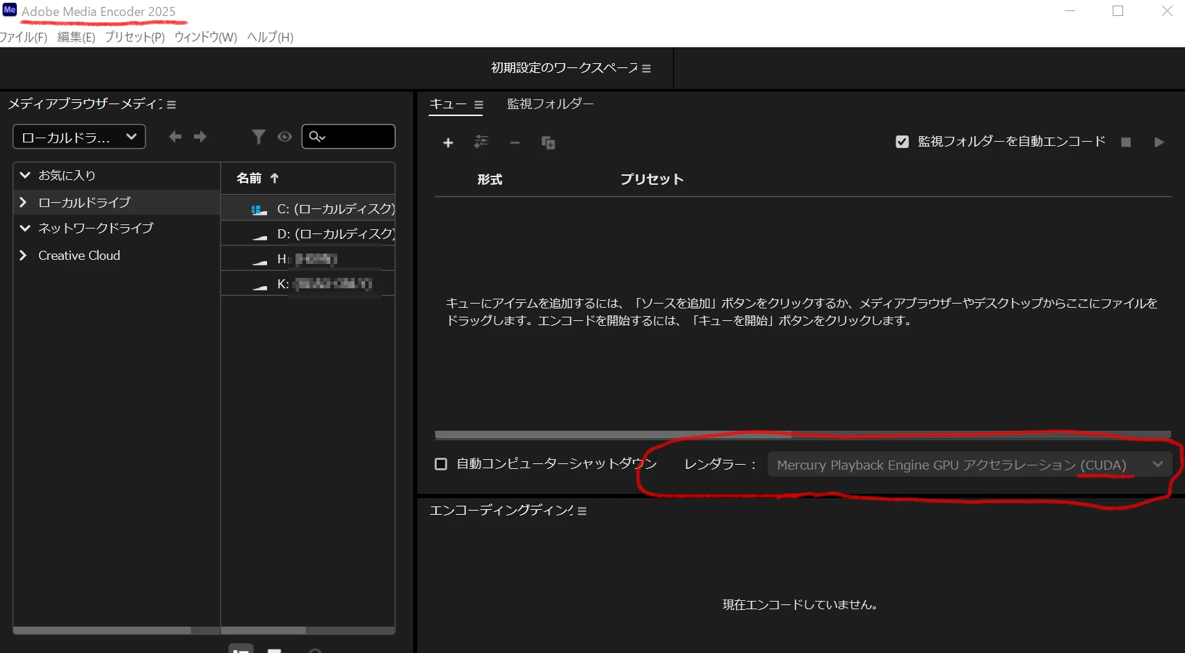 心当たりは数日前にMediaEncoderをバージョンアップしたことで、1つずつバージョンんを下げて直るか確認しましたが解決しませんでした。