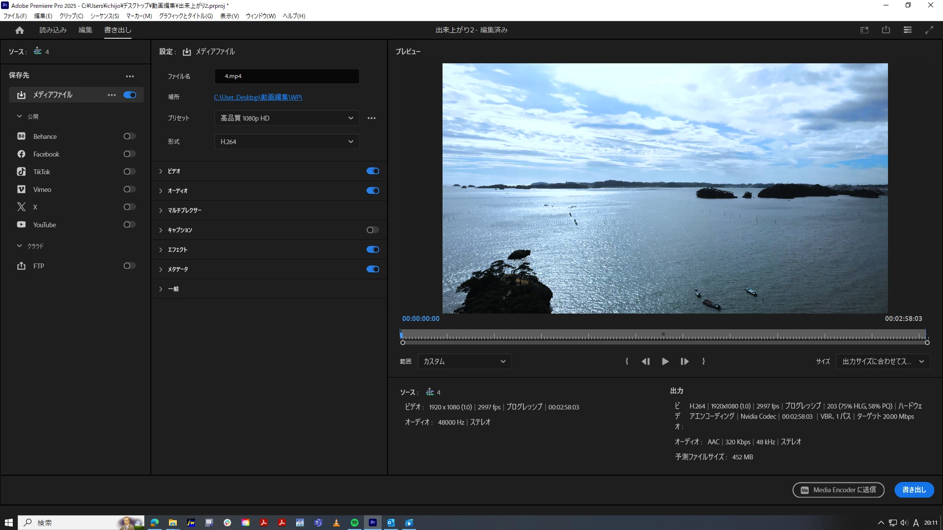 〇メディアキャッシュの削除、PCの再起動、エンコーダーでの書き出しも試しましたが結果は一緒でした。(エンコード中のサムネ動画には異常なし)