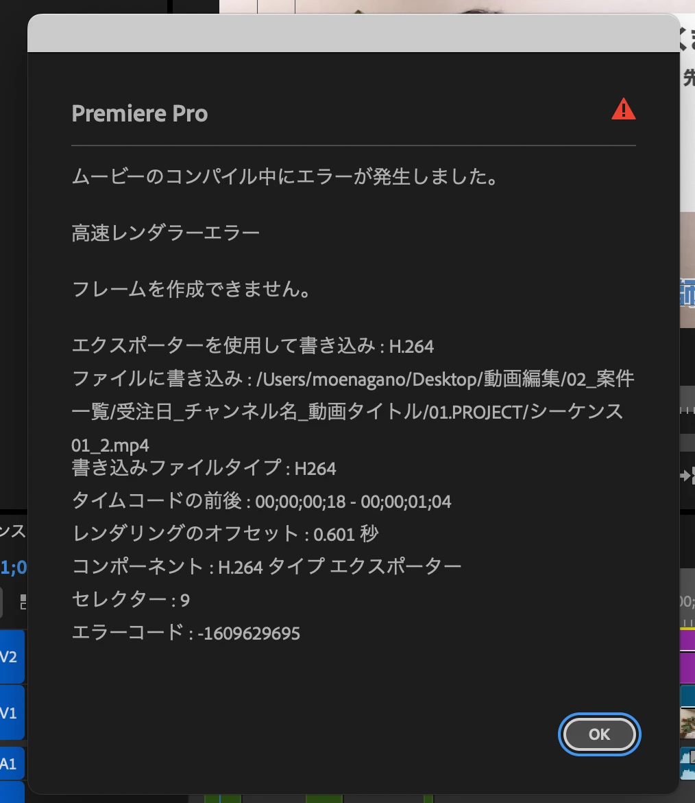 編集していた動画を書き出そうとしたところ、画像のようなエラーが発生し書き出しができません。自分なりに調べ、最新バージョンにアップデートしたり、逆にバージョンダウンや再起動をしたりしましたが解決しません。