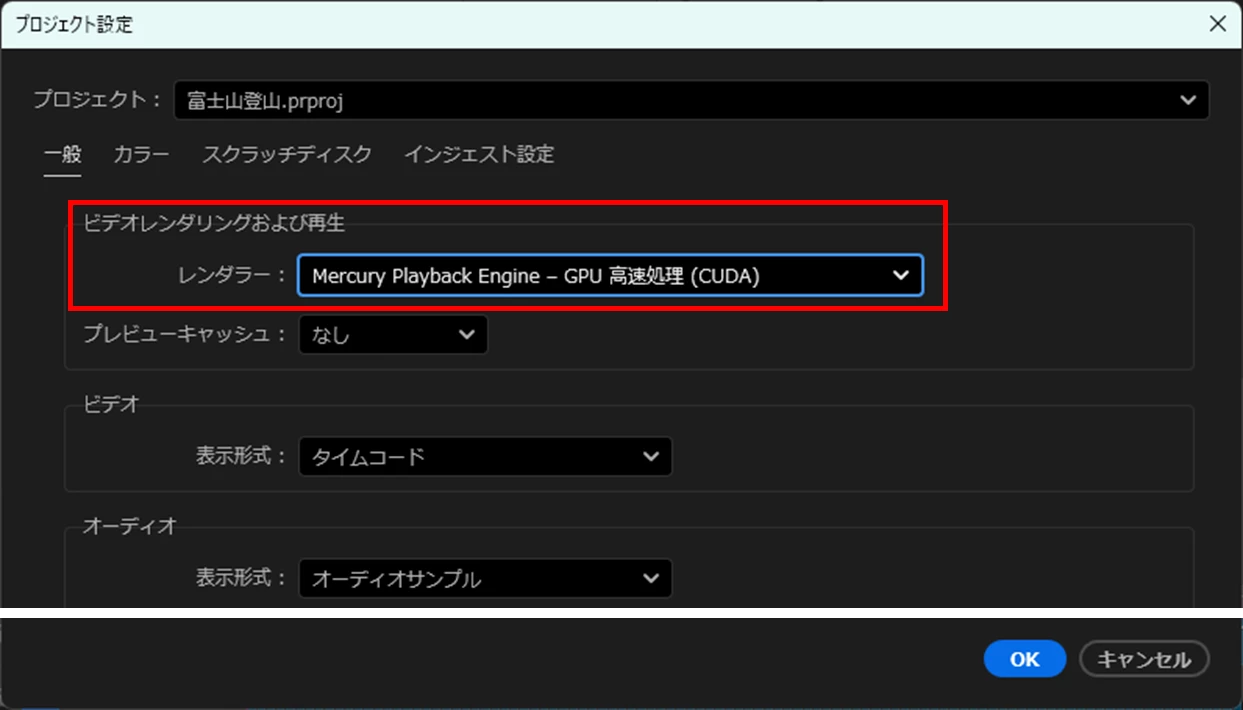・「プロジェクト設定」ウィンドウでレンダラーの設定内容を教えてください。またそこにはソフトウェア処理は選択肢にありますか。