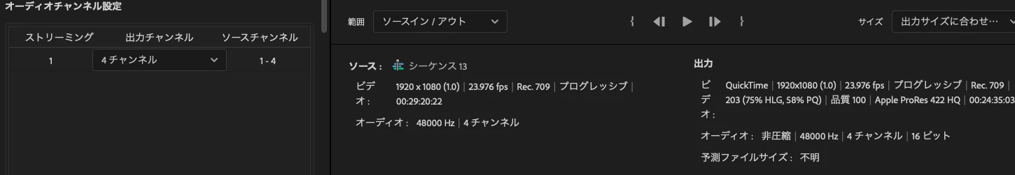 書き出しをすると音声のL,RがMIXされたL,Rになってしまう