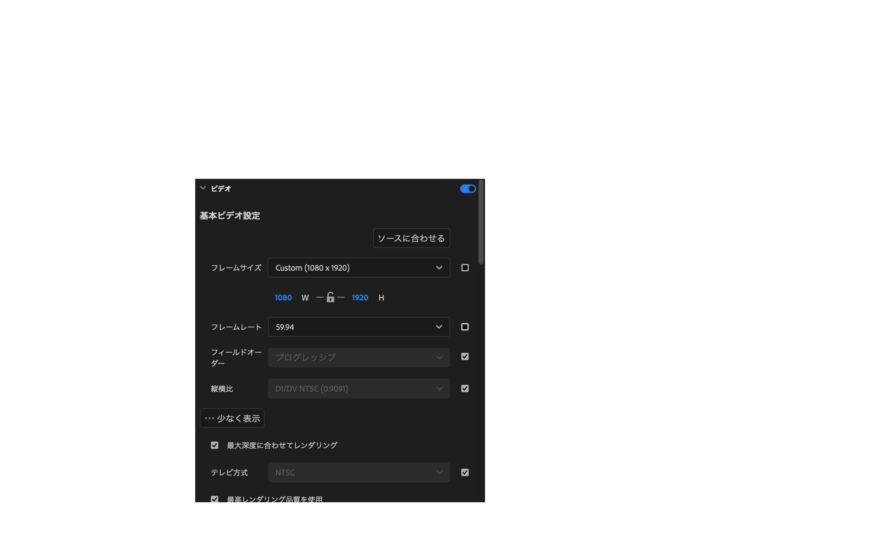 縦長動画(1080:1920)を作成しようと書き出したのですが、フレームサイズが変更(981:1920)されて書き出されてしまいます。