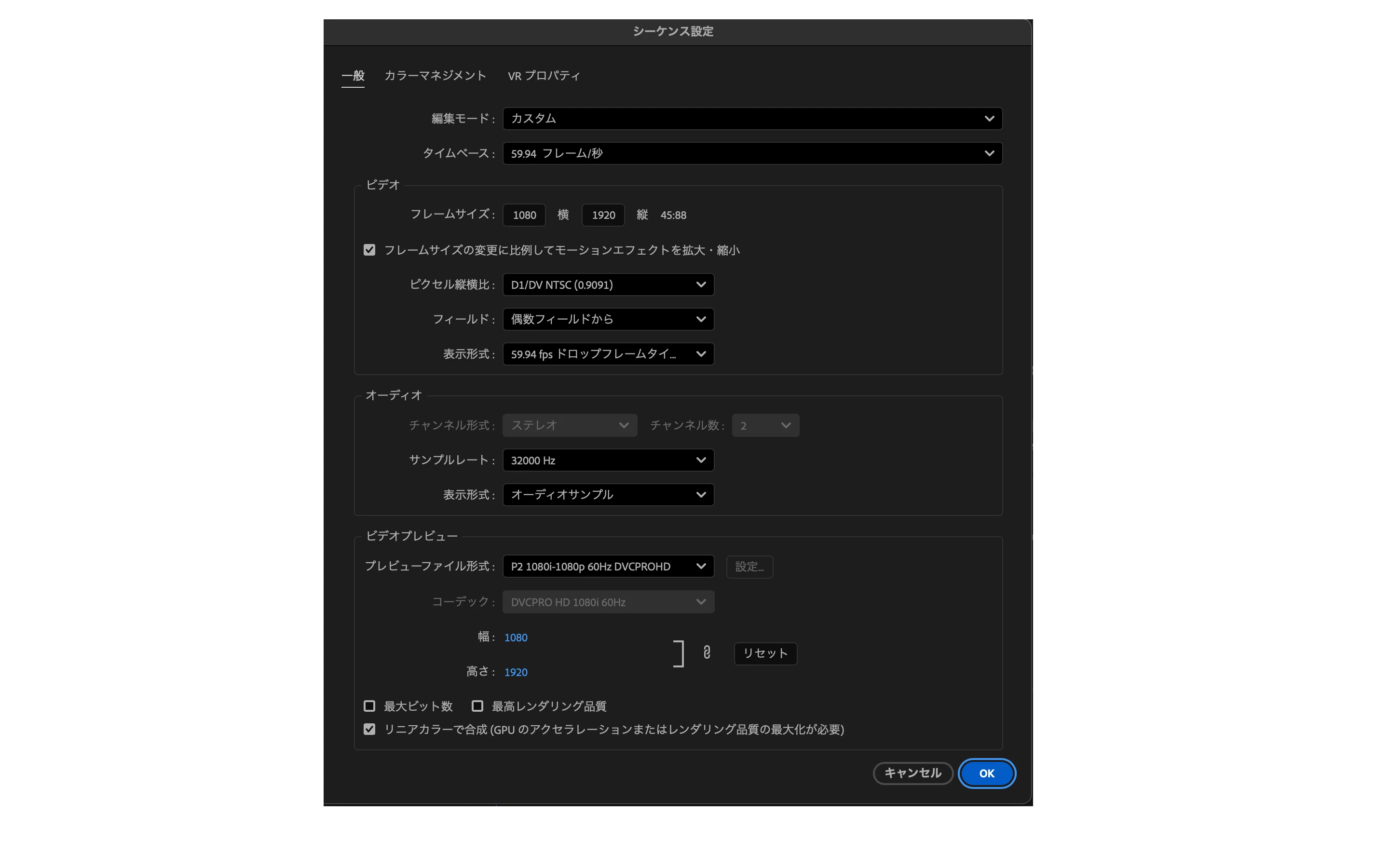 (もうひとつ、フレームサイズとは無関係ですが、用途によってはオーディオのサンプリングレートを48000Hzにした方が無難な可能性もあります。)