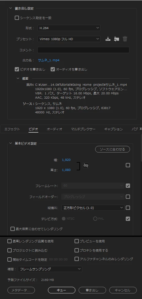 プレミアプロで動画編集後、書き出しして完成した動画をチェックすると