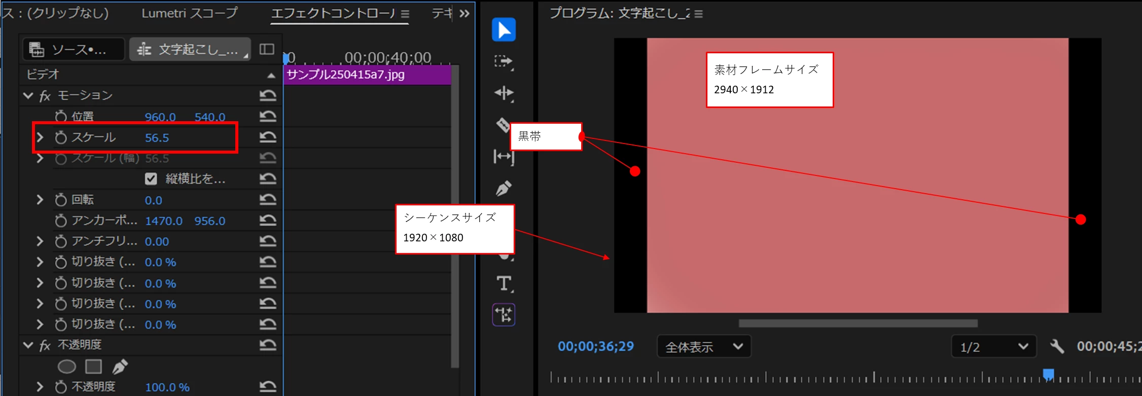 ソースビデオのサイズが1920×1080ではなく2940×1912になっているのが原因なのでしょうか。
