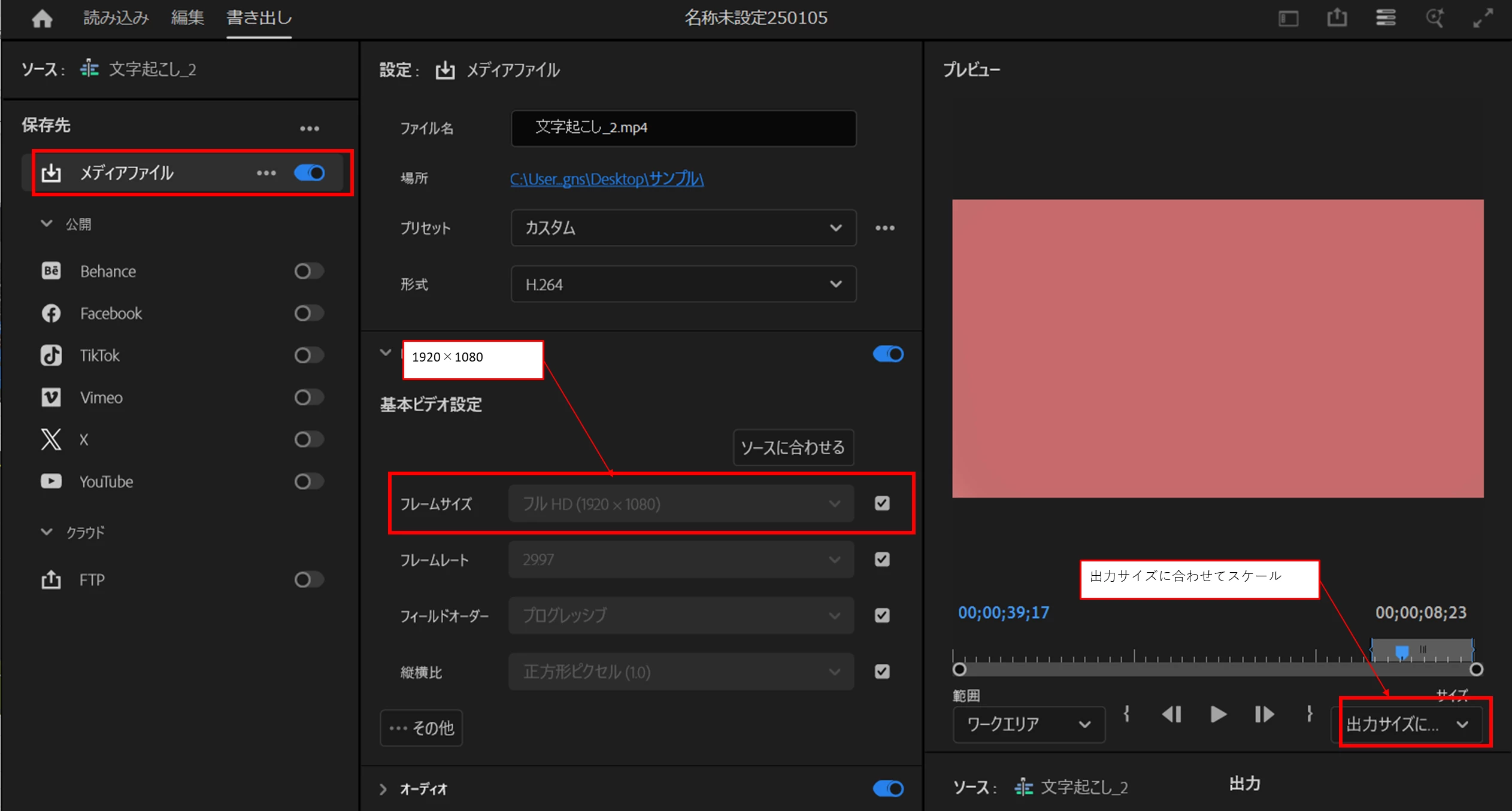 「出力サイズにに合わせてスケール」を選ぶとプレビューで左右に黒枠が出てしまいます。書き出しごアップロードしてみても同じでした。