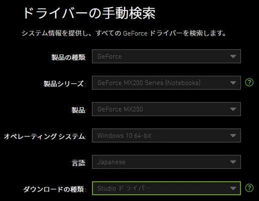 ・GPU:Geforce Game Ready Driver バージョン466.47
