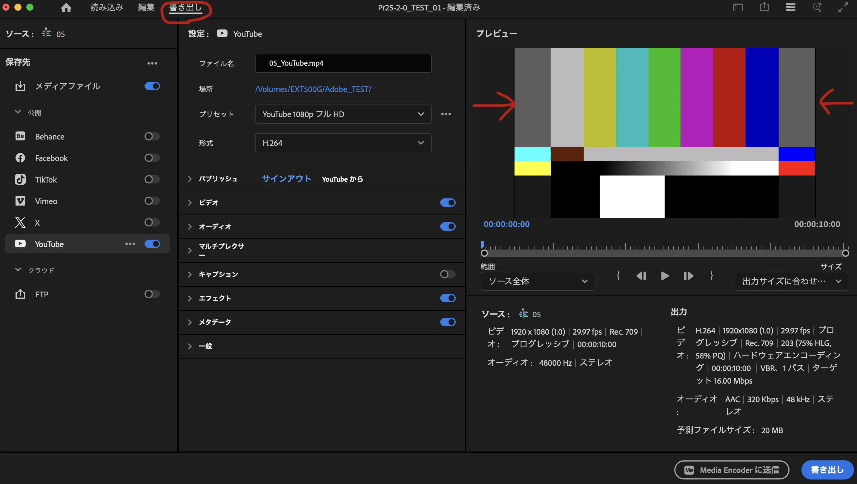 カラーバーでの確認が遅くなり申し訳ございません。こちらYouTube書き出した結果となります。やはり左右に黒い線が出来てしまうようです。