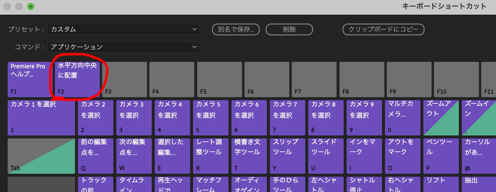 水平方向中央揃えのショートカットキーを”B”に設定しているのですが