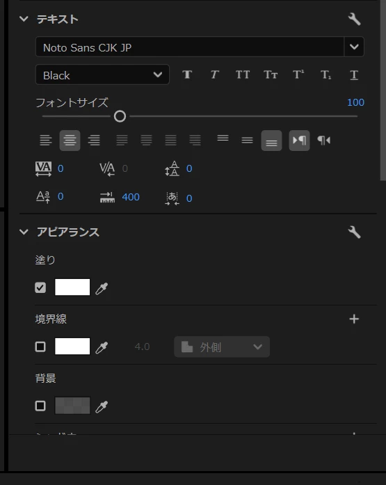 0008_1130ParticipantForum|Forum|1 year agoFebruary 5, 2025解決済み水平方向中央Forum|Forum|1 year agoFebruary 5, 2025返信数 1.170 ビューこんにちは。テロップを水平方向中央にしたいのですが、プロパティ内にボタンが見当たりません。見つけ方を教えていただけますと幸いです。よろしくお願いいたします。操作方法・手順FAQ