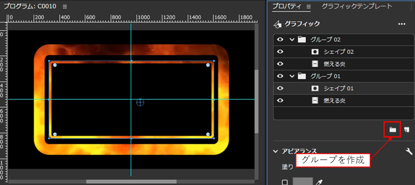 *グループ化するには、2個のレイヤーを選択し「グループを作成」アイコンをクリックします。