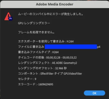 特定のプロジェクトが書き出しできない(GPUレンダリングエラー)
