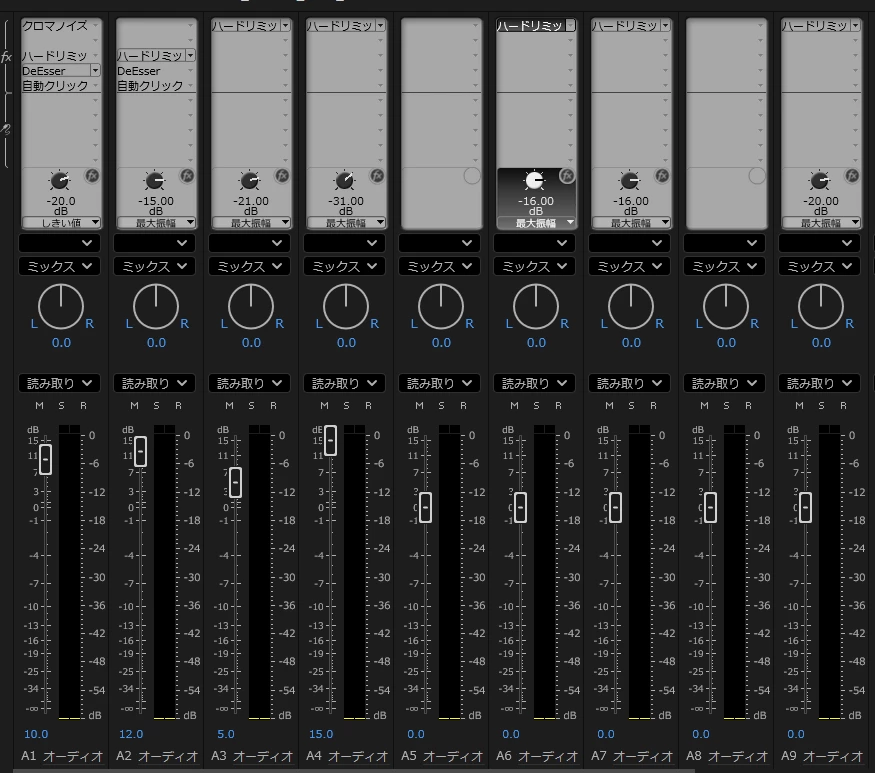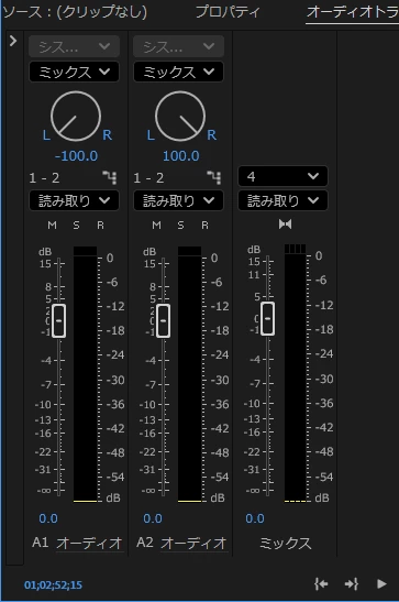 トラックのMボタンも有効になっておらず、オーディオトラックミキサーの方でもボリュームを極端に下げるようなことはしていません。