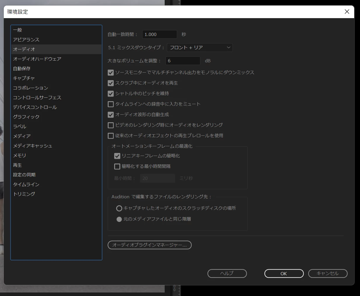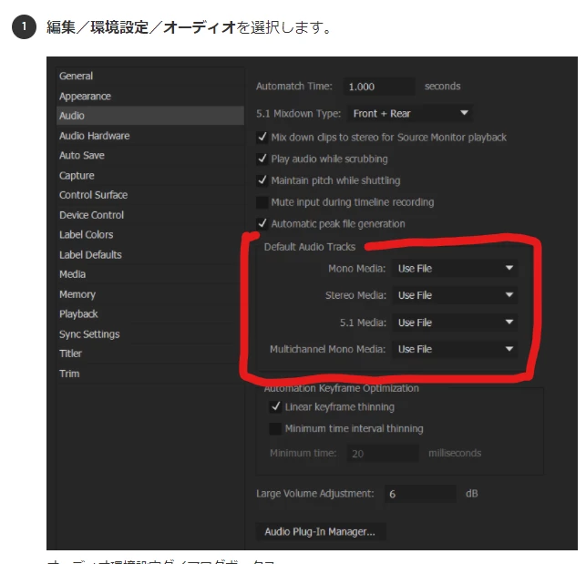 環境設定で読み込み時のオーディオ設定をモノラルにしたいが出来ない