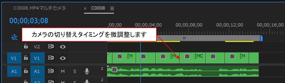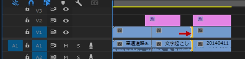 についても別トラックのトリムポイントと重なっている箇所に編集点が追加され、