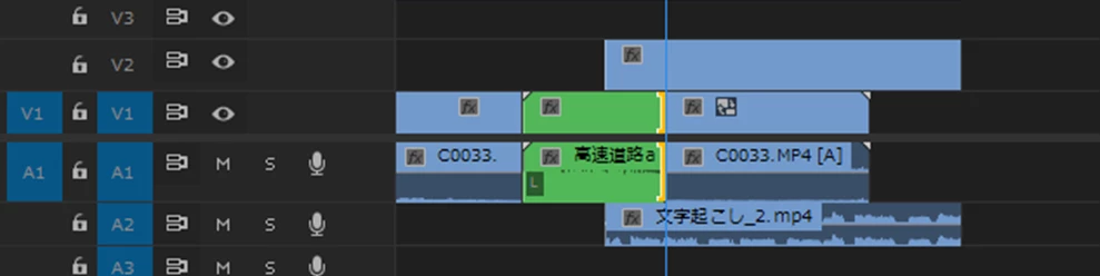 については別トラックのトリムポイントと重なっているクリップがシフトするところまで