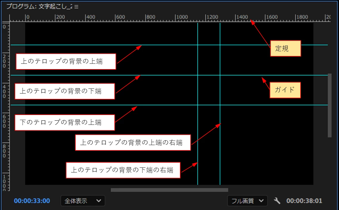 2.定規、ガイドを表示します